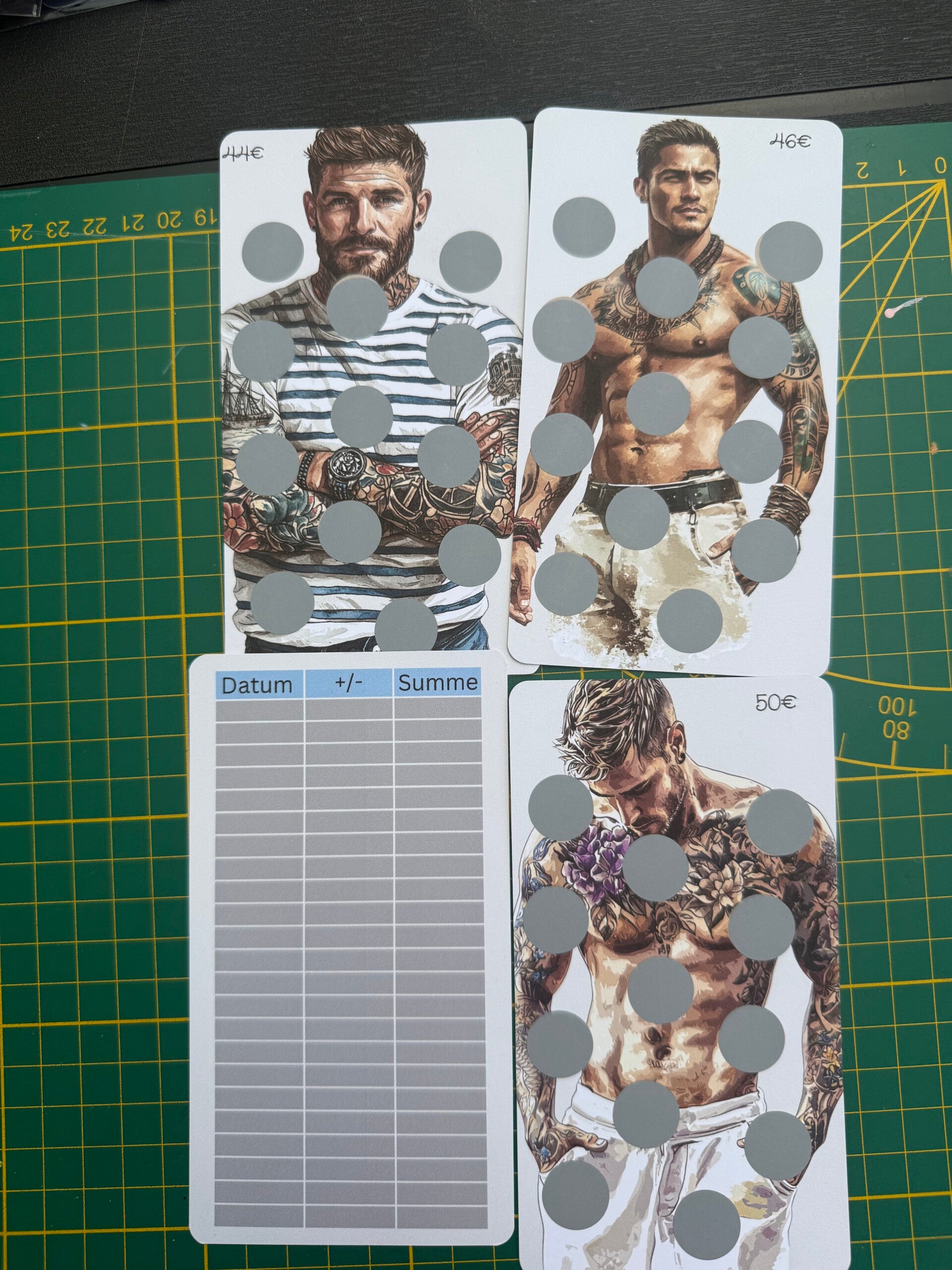 4 Einzelchallenges gedruckt auf 300g Papier zum Rubbeln