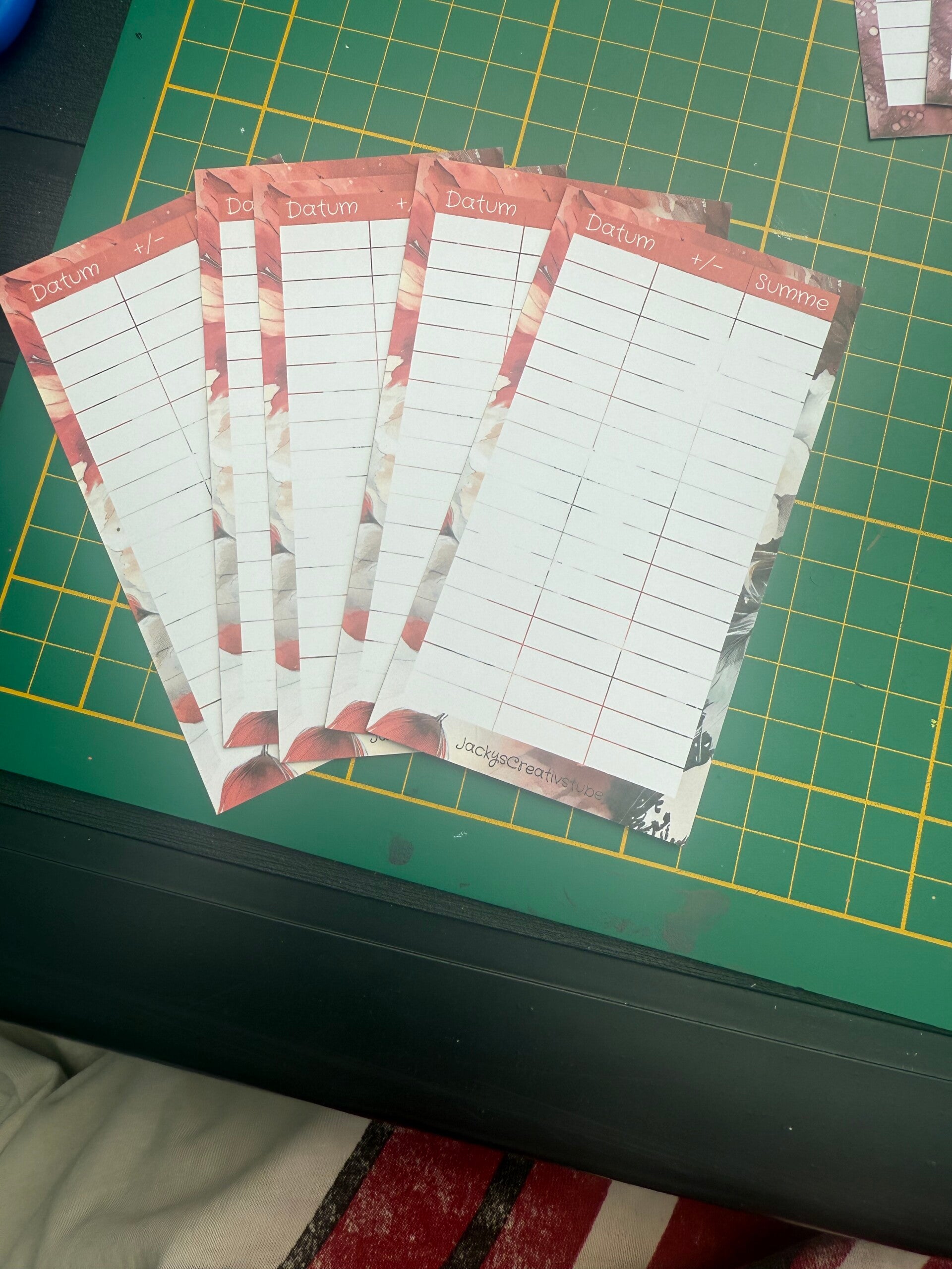 5er Set Tracker in verschiedenen Farben. gedruckt auf 220g udn nicht laminert.