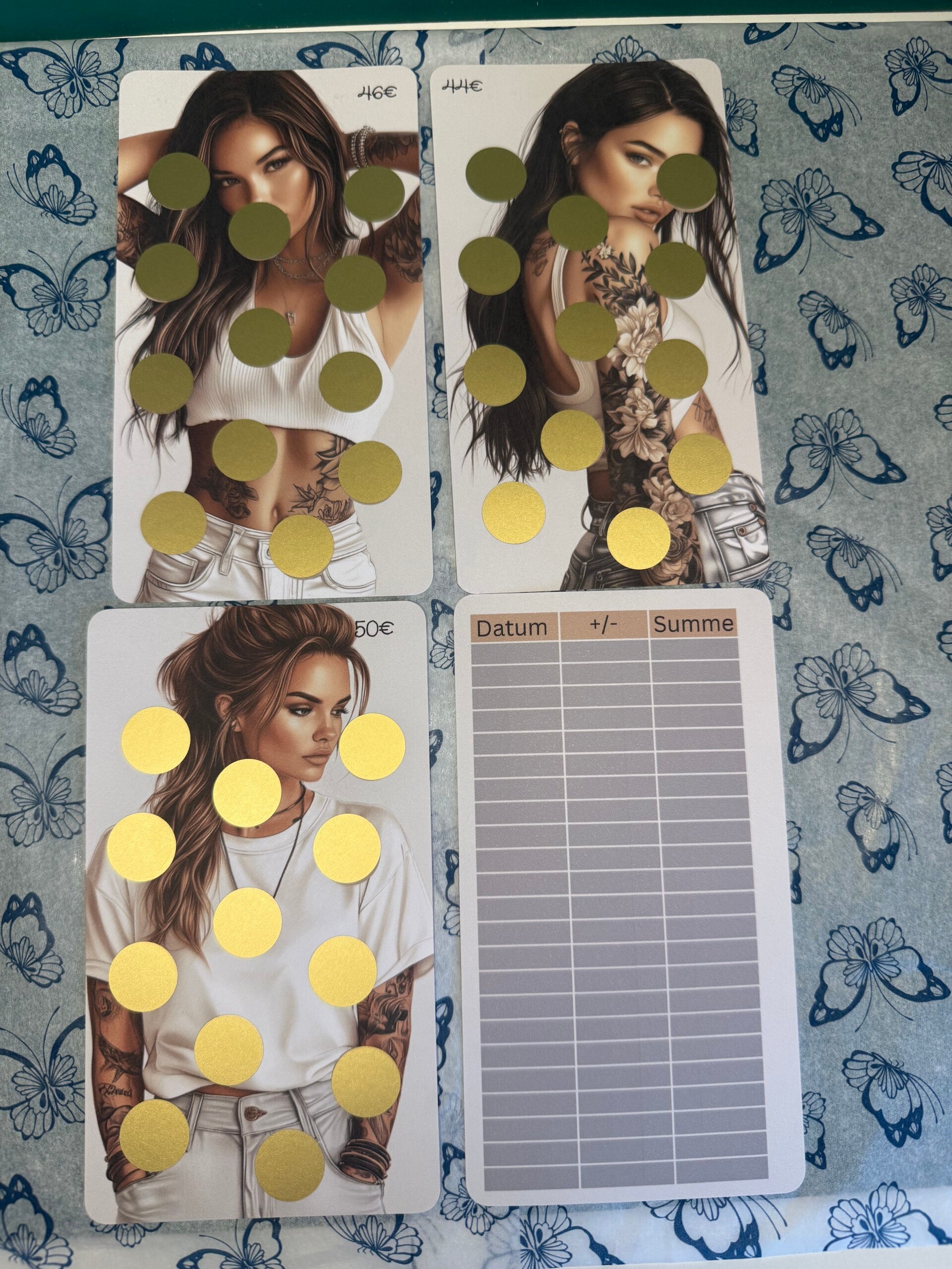4 er Set Rubbelchallenge Tattoo Girl