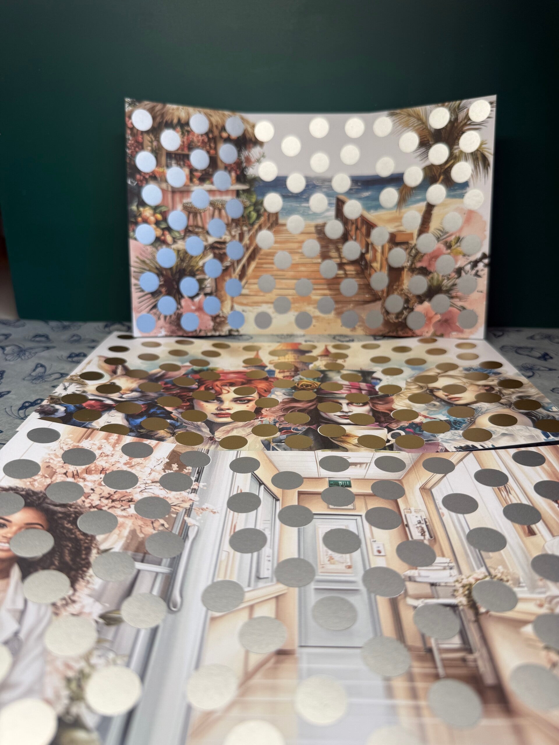 Vorsicht man kann sich am Papier schneiden. Papier ist ebenfalls brennbar daher keine offenen Flammen über dem Papier. Lose nicht an Kinder geben da Verschluckgefahr. Rubbelsticker sind nicht essbar da sie giftig sind.