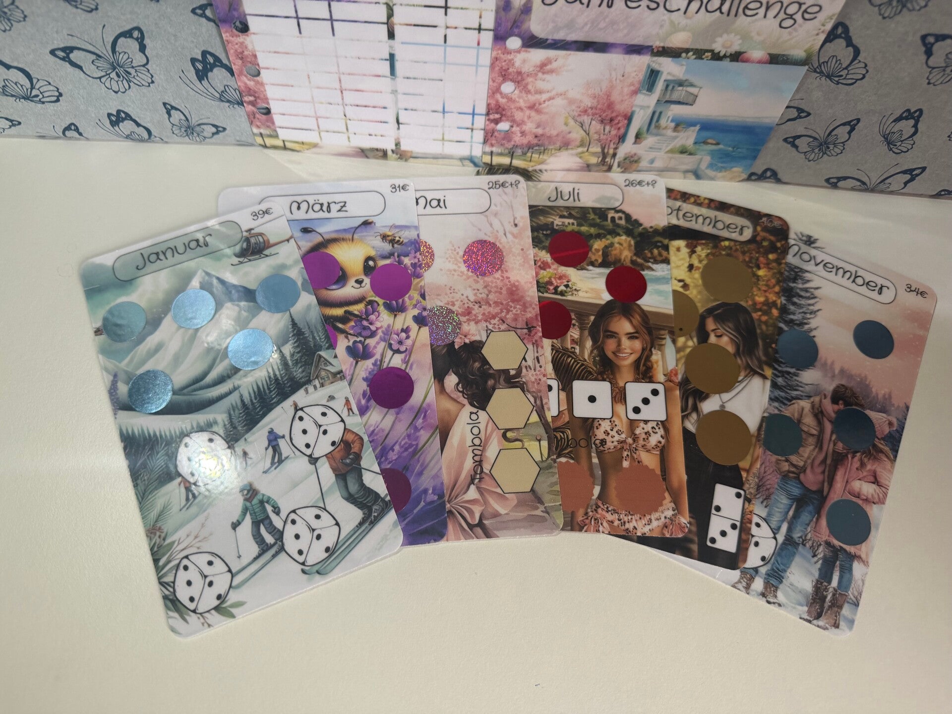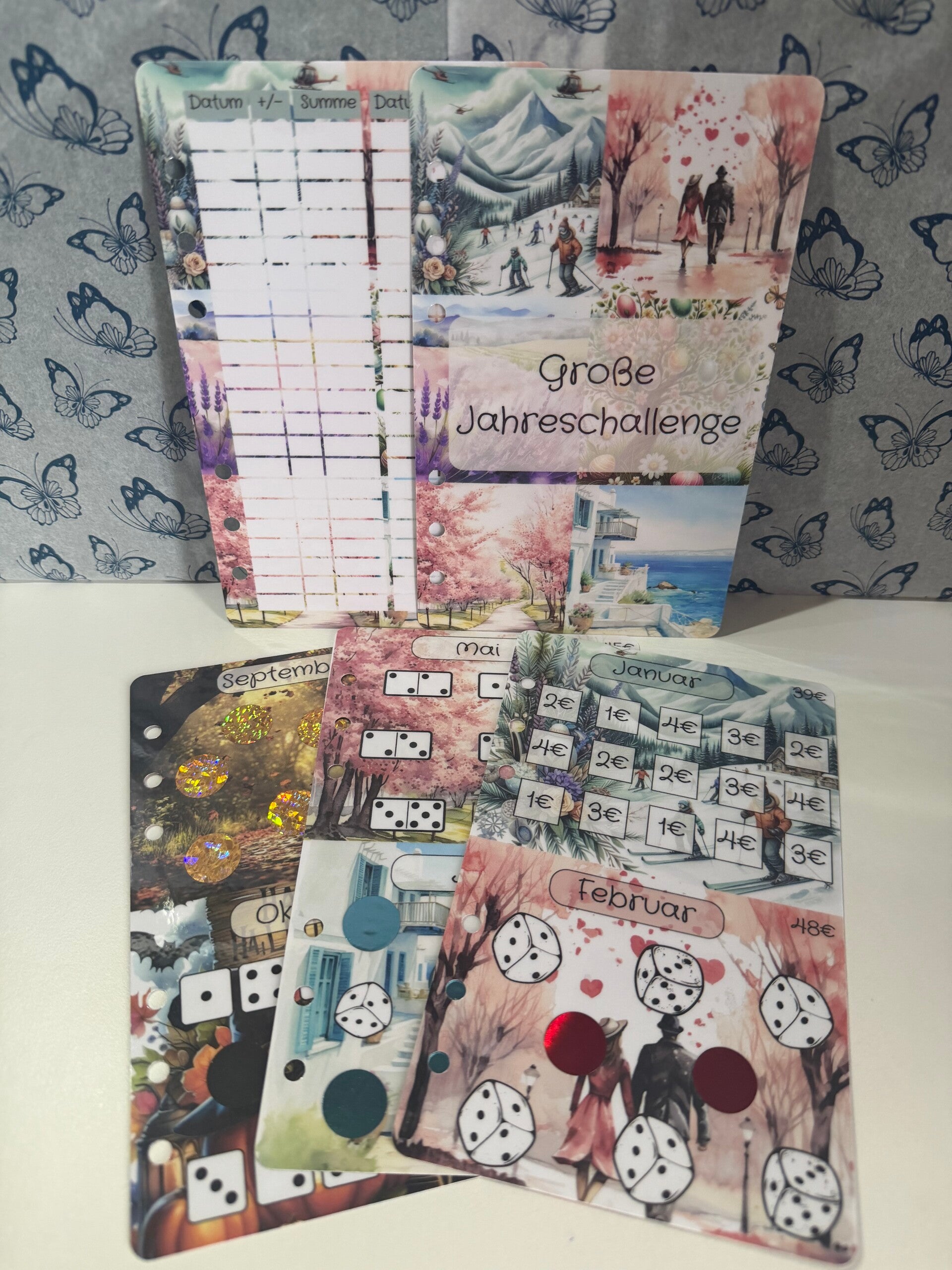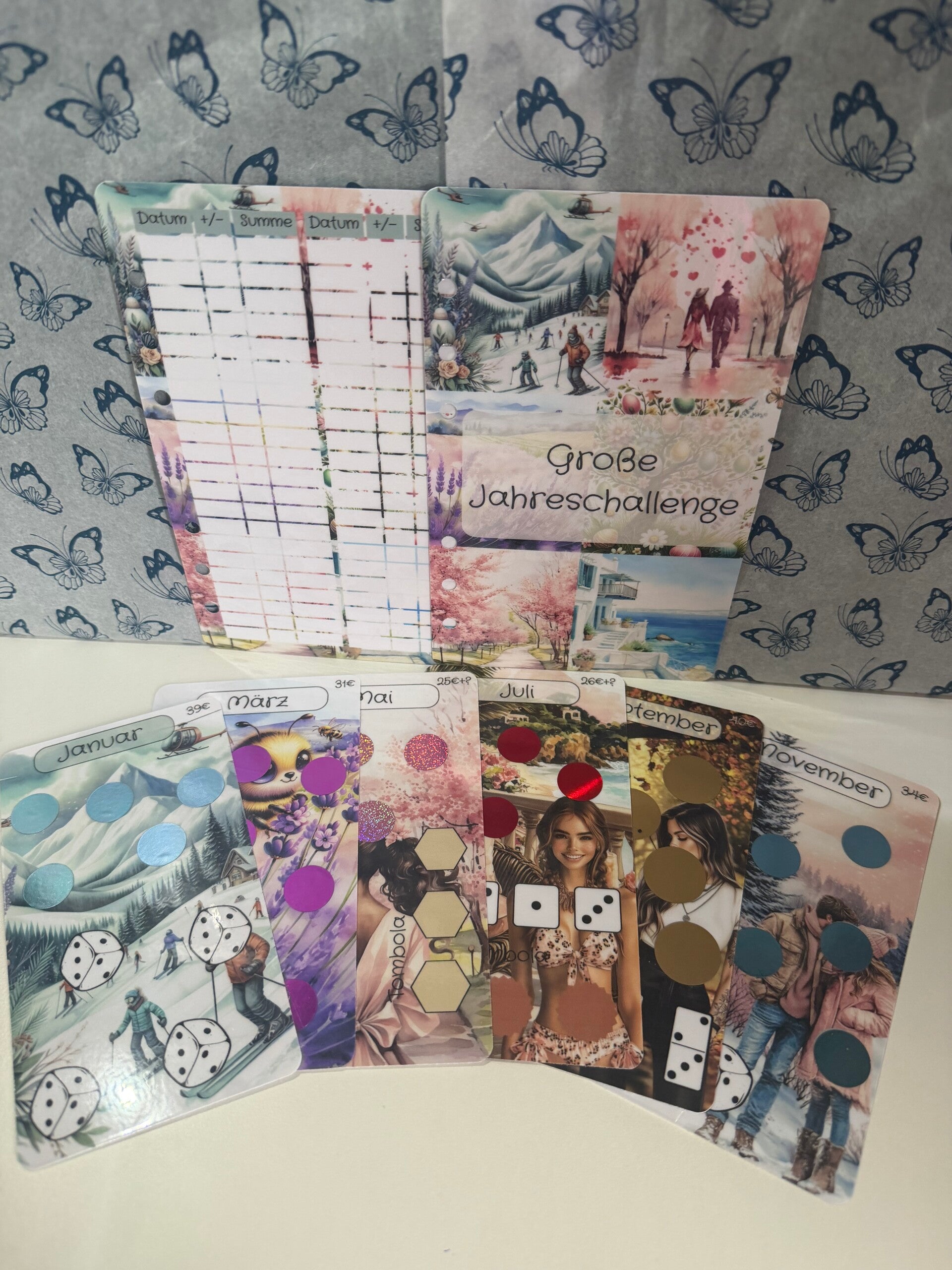 Große Jahreschallenge zum einheften oder für in die Hüllen. Alle Challenges sind lamineirt und mit einem folienstift wiederverwendbar